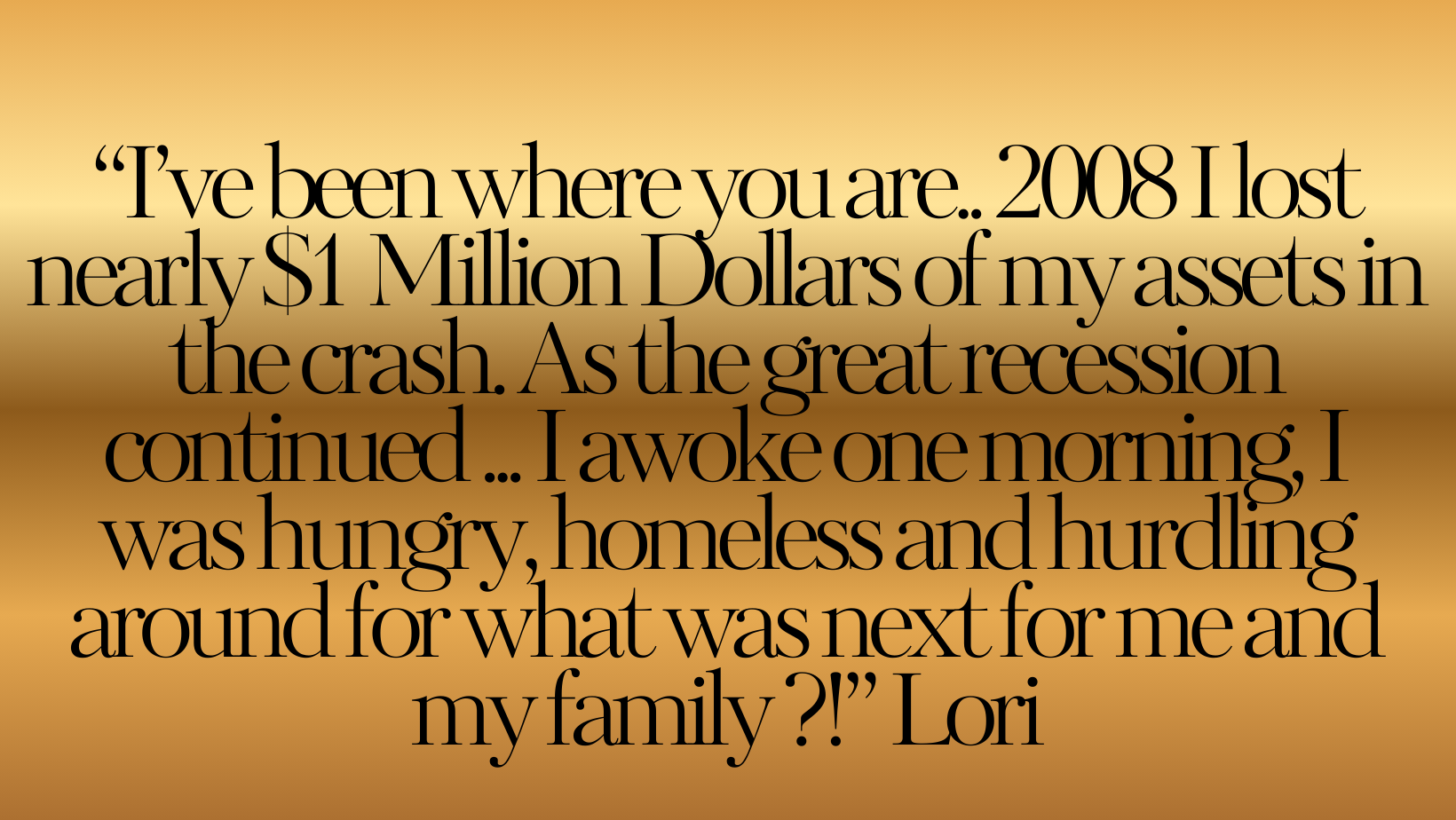 Even after a devastating setback during the 2008-2009 housing crisis, where she lost over $1 million of assets and became homeless overnight, she fueled a powerful reinvention.